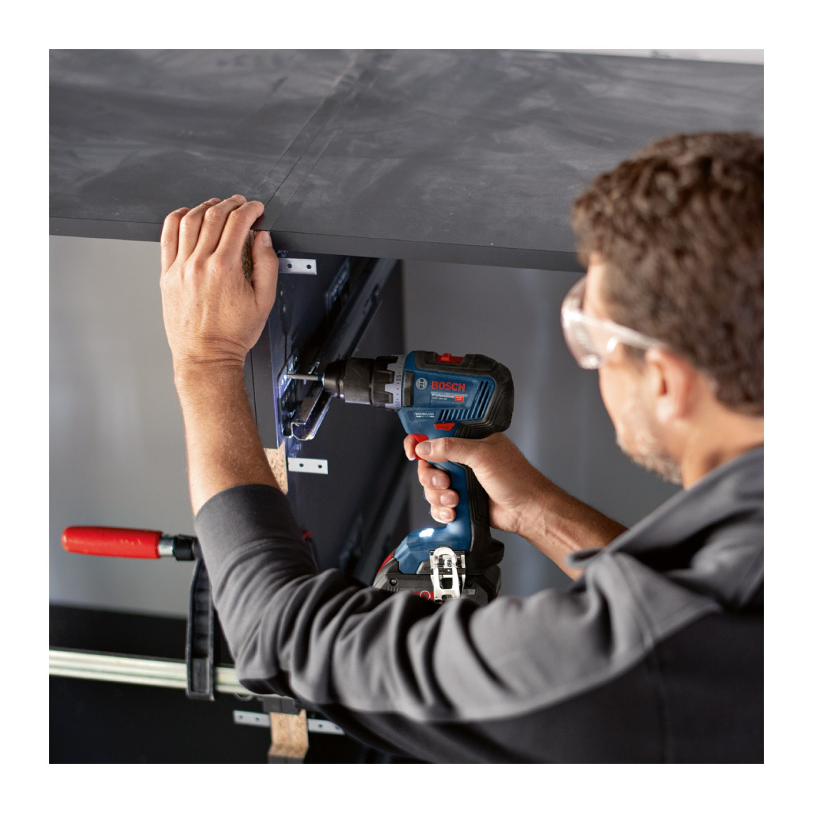 La Perceuse-Visseuse Bosch GSR 18V-55 Professional peut être alimentée avec une batterie ProCORE ou AMP Share 18 volts.