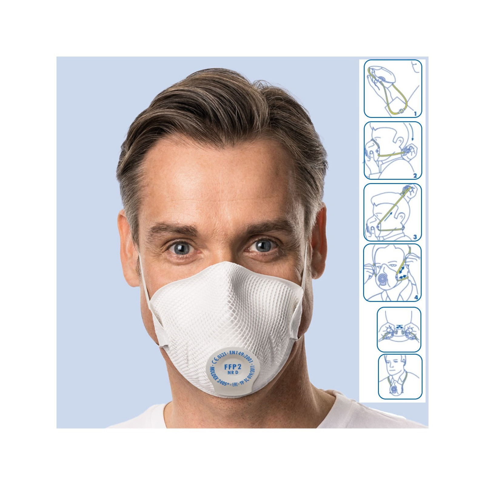 Comme son nom l'indique, le masque FFP2 est conçu pour un usage unique et ne doit pas être réutilisé après utilisation. Une fois le masque porté, il doit être correctement éliminé conformément aux directives locales sur l'élimination des déchets médicaux ou des équipements de protection individuelle.