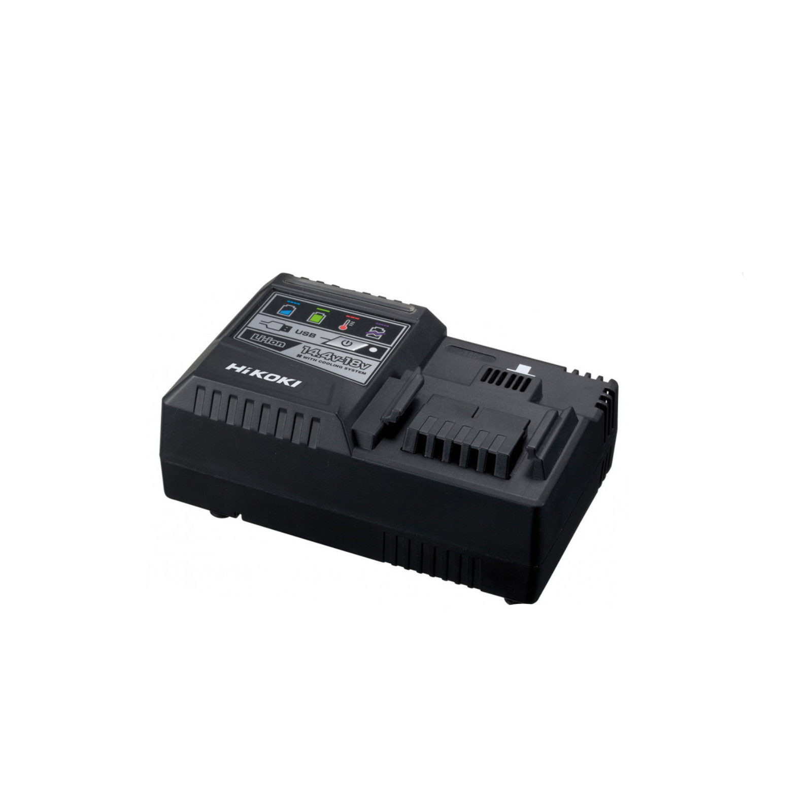Chargeur ventilé, optimise l'utilisation des batteries Li-ion à glissière 14,4 - 18V et 36V (Multivolt) .