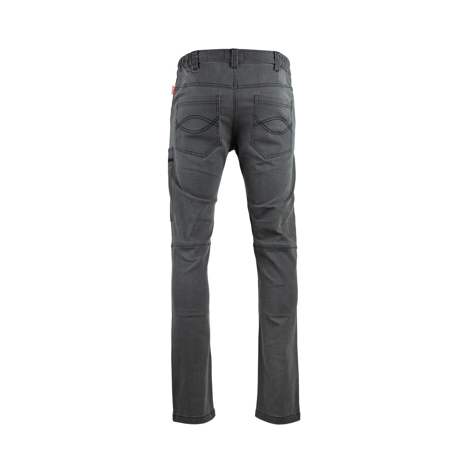 Ce modèle est doté d’une ceinture élastiquée sur les côtés, assurant un ajustement parfait et un confort accru, avec 5 passants pour ceinture pour plus de stabilité. Il dispose d'une braguette zippée en métal noir avec bouton, et d'une réhausse dos avec pinces pour un meilleur maintien.