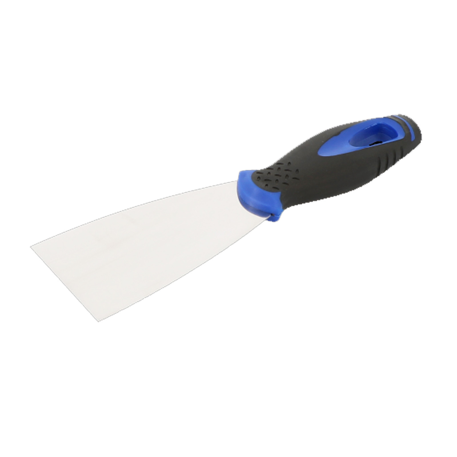 Lame inox rigide, galbée. Manche bi-matière ergonomique. Lame 1 mm affinée à 0,50 mm. Largeur lame : 60 mm