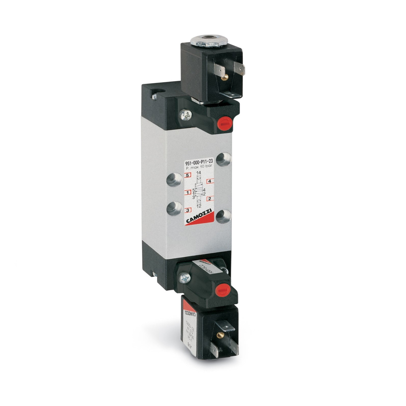 Le Distributeur 961.000.P11.23 Camozzi est un distributeur électrique monocommande à 5 orifices de sortie pour les lignes d'air comprimé, et 3 orifices retour. Il est conçu selon la norme ISO 5599-1, ce qui signifie qu'il est compatible avec les connecteurs et les raccords standardisés utilisés dans l'industrie.