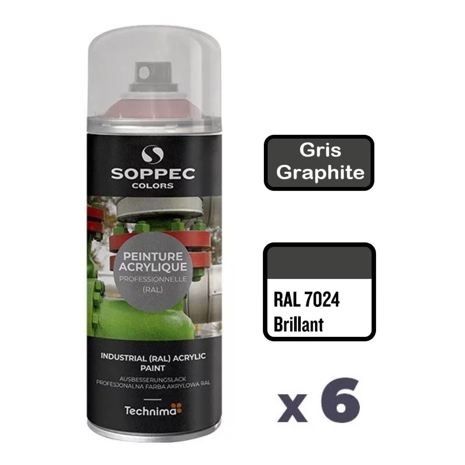 6 Peintures Acryliques Aérosol 520 ML Gris Graphite - 7024 SOPPEC AEROPG7024BRI Agrandir l'image