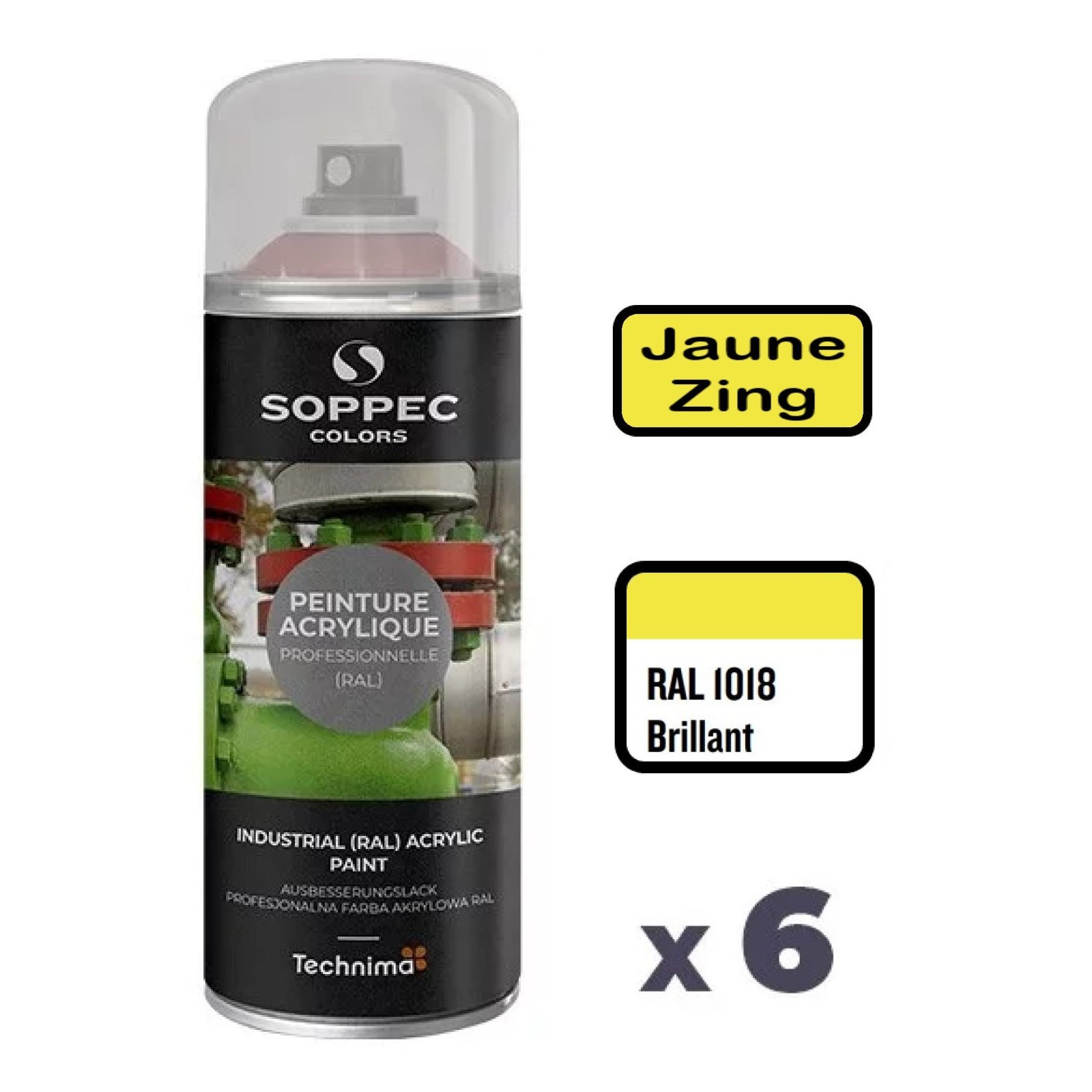 La peinture acrylique en aérosol SOPPEC Colors éxiste dans la plupart des nuances de RAL et se décline aussi bien en brillant, mat ou satin. Elle se décline également dans la quasi-intégralité des RAL spécifiques pour la sécurité, la signalisation ou l'identication des tubulures de fluide (Gaz, Air, Eau, Vapeur ...).