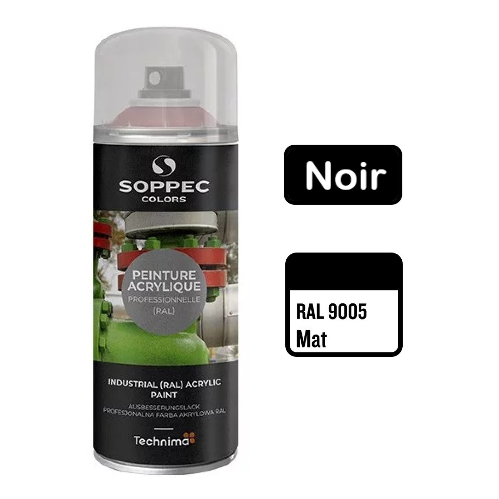 La peinture acrylique en aérosol SOPPEC Colors éxiste dans la plupart des nuances de RAL et se décline aussi bien en brillant, mat ou satin. Elle se décline également dans la quasi-intégralité des RAL spécifiques pour la sécurité, la signalisation ou l'identication des tubulures de fluide (Gaz, Air, Eau, Vapeur ...).