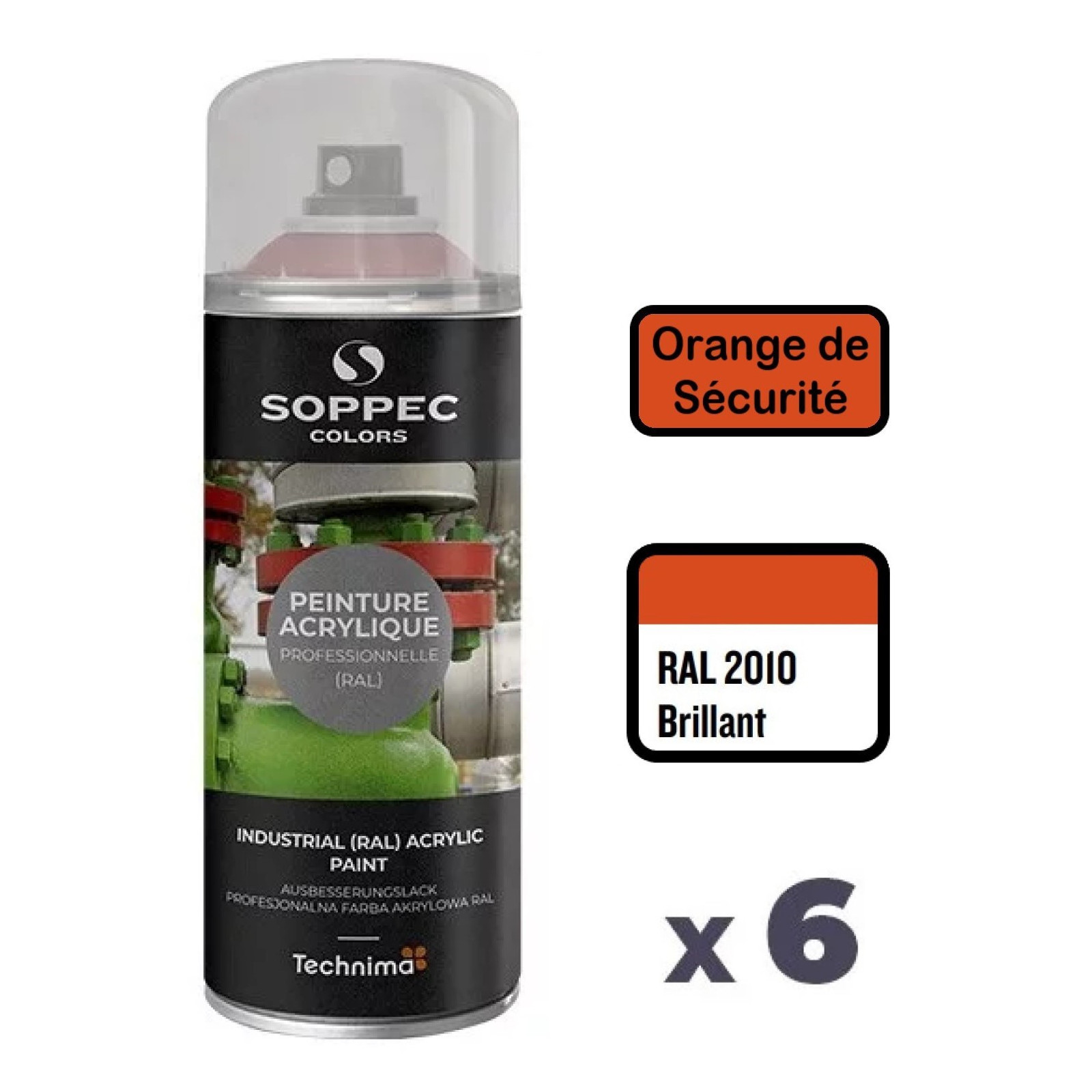 La peinture acrylique en aérosol SOPPEC Colors éxiste dans la plupart des nuances de RAL et se décline aussi bien en brillant, mat ou satin. Elle se décline également dans la quasi-intégralité des RAL spécifiques pour la sécurité, la signalisation ou l'identication des tubulures de fluide (Gaz, Air, Eau, Vapeur ...).