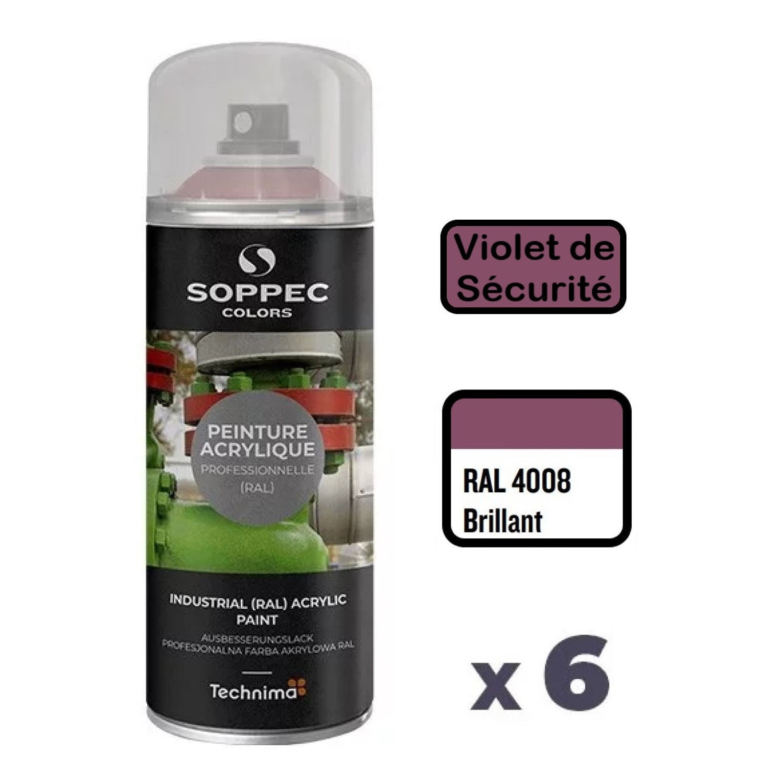 La peinture acrylique en aérosol SOPPEC Colors éxiste dans la plupart des nuances de RAL et se décline aussi bien en brillant, mat ou satin. Elle se décline également dans la quasi-intégralité des RAL spécifiques pour la sécurité, la signalisation ou l'identication des tubulures de fluide (Gaz, Air, Eau, Vapeur ...).