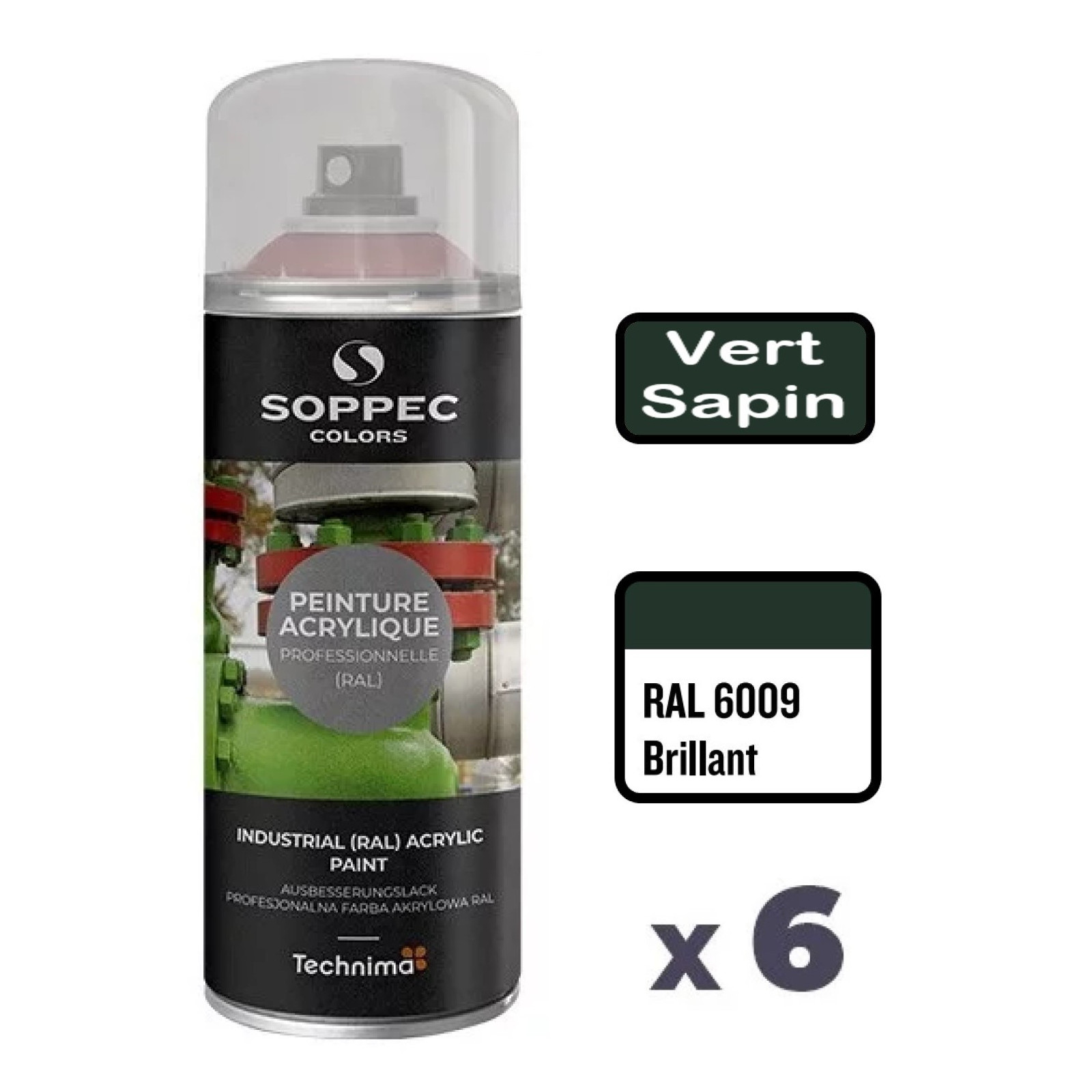 La peinture acrylique en aérosol SOPPEC Colors éxiste dans la plupart des nuances de RAL et se décline aussi bien en brillant, mat ou satin. Elle se décline également dans la quasi-intégralité des RAL spécifiques pour la sécurité, la signalisation ou l'identication des tubulures de fluide (Gaz, Air, Eau, Vapeur ...).