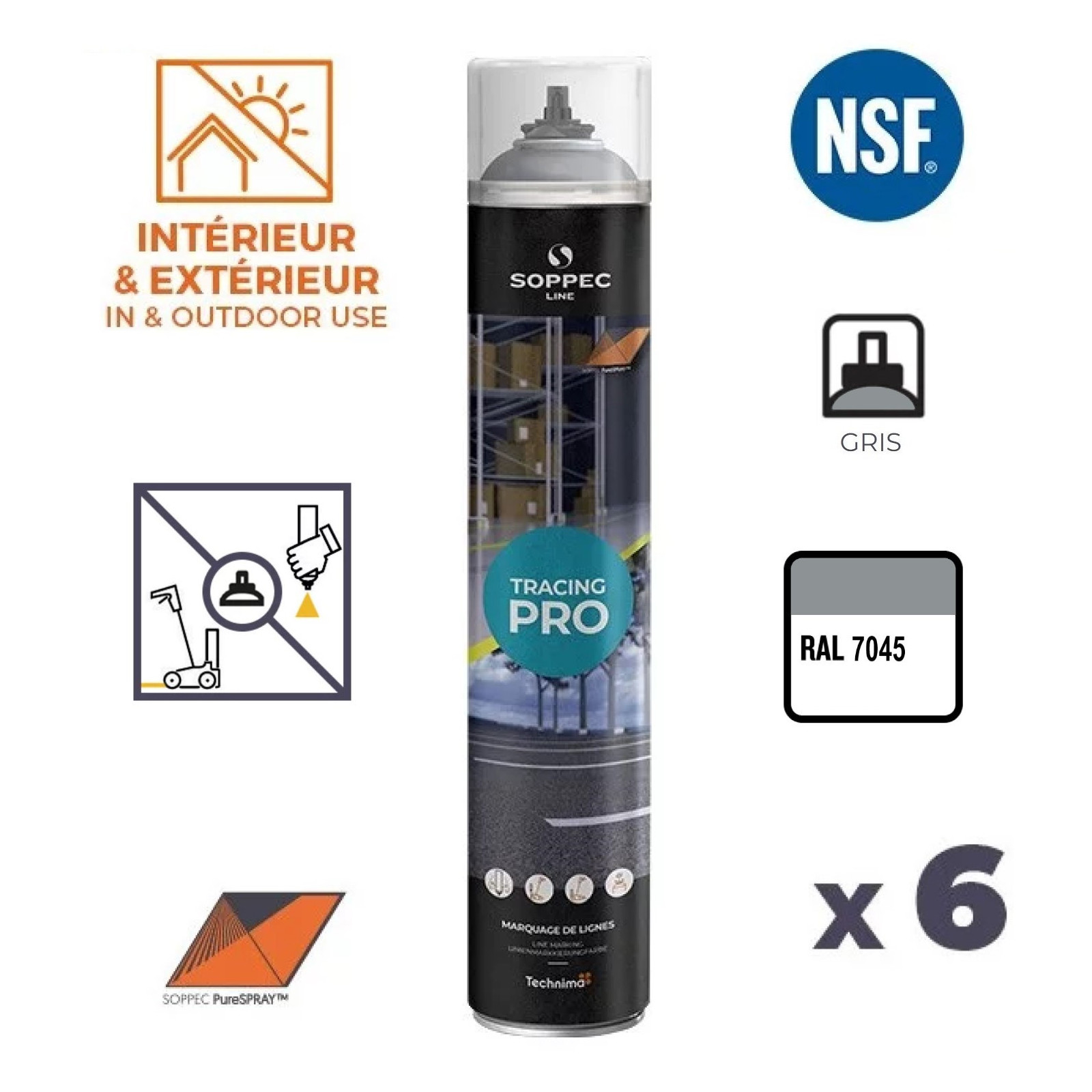 Le traceur de ligne TRACING® PRO SOPPEC en aérosol de 1000ML peut être utilisé avec le chariot de traçage au sol SOPPEC DRIVER™ pour une utilisation facile et précise sur les surfaces de grandes dimensions.
