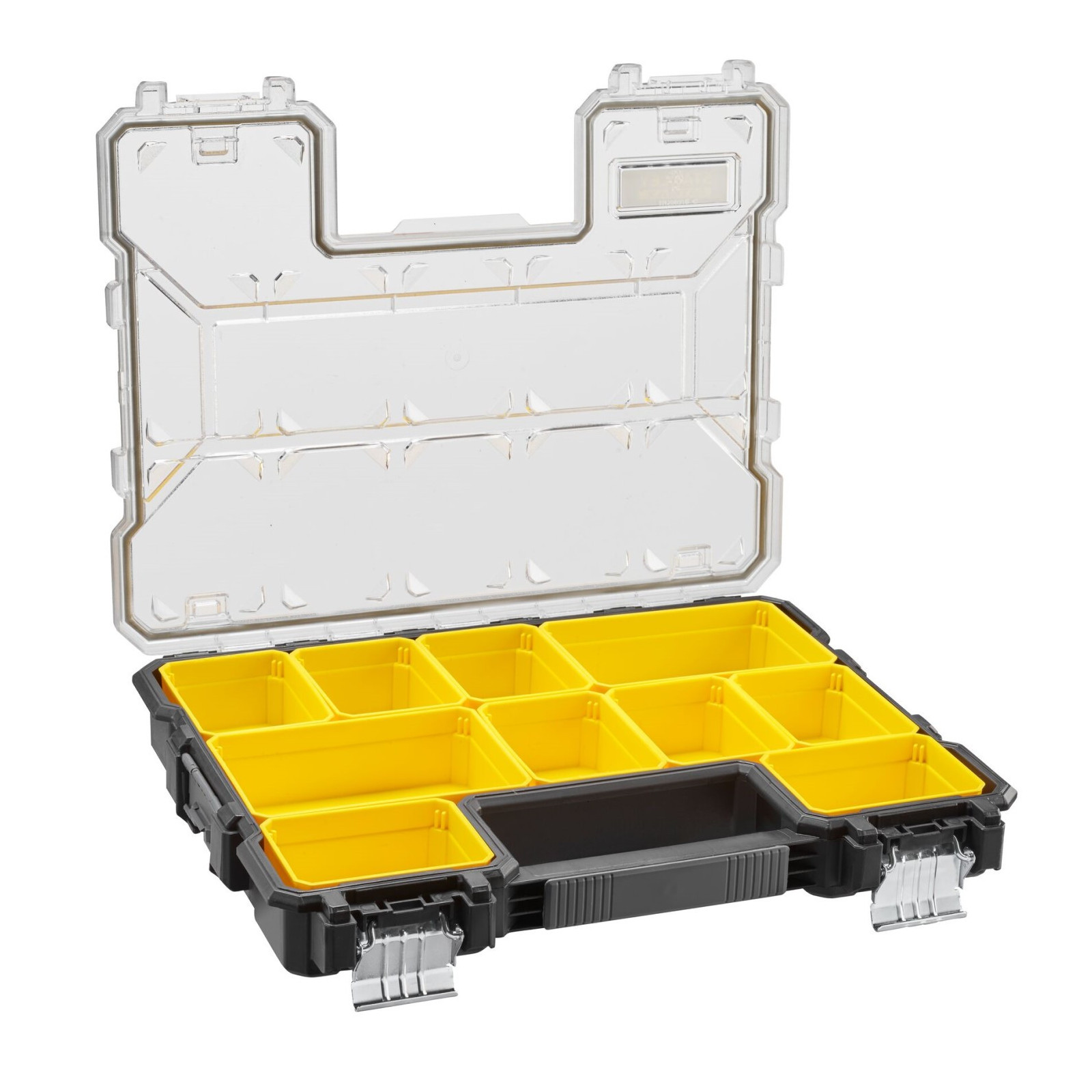 L'organiseur dispose de 10 compartiments de différentes tailles, offrant une capacité de stockage suffisante pour ranger une grande variété d'outils et d'accessoires. Les compartiments sont mobiles.