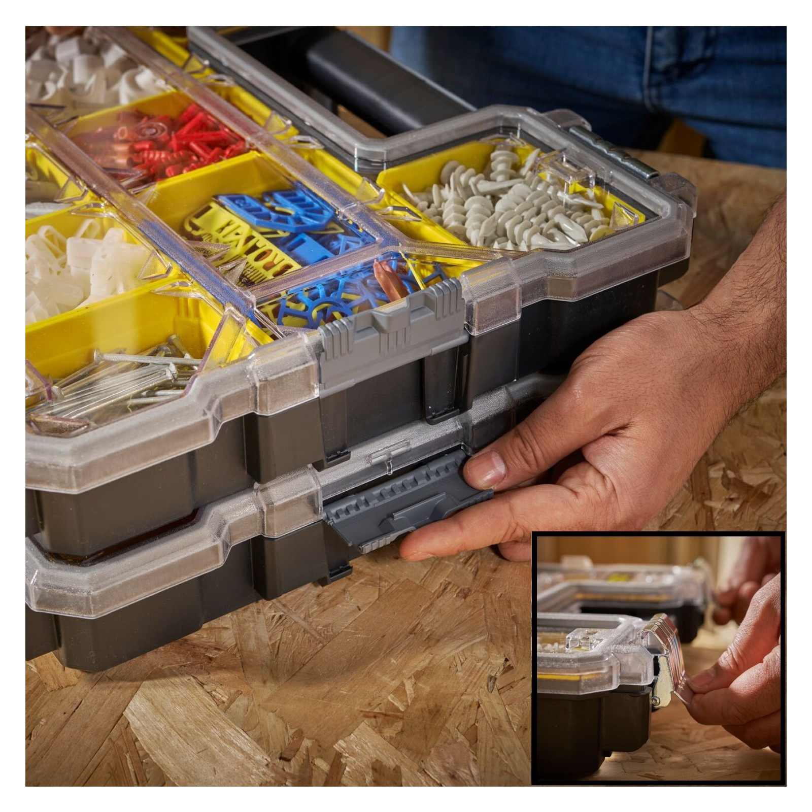 L'organiseur Stanley FATMAX est doté d'un design empilable, permettant de le combiner avec d'autres boîtes et organisateurs de la gamme FATMAX pour créer un système de rangement personnalisé en fonction de vos besoins.