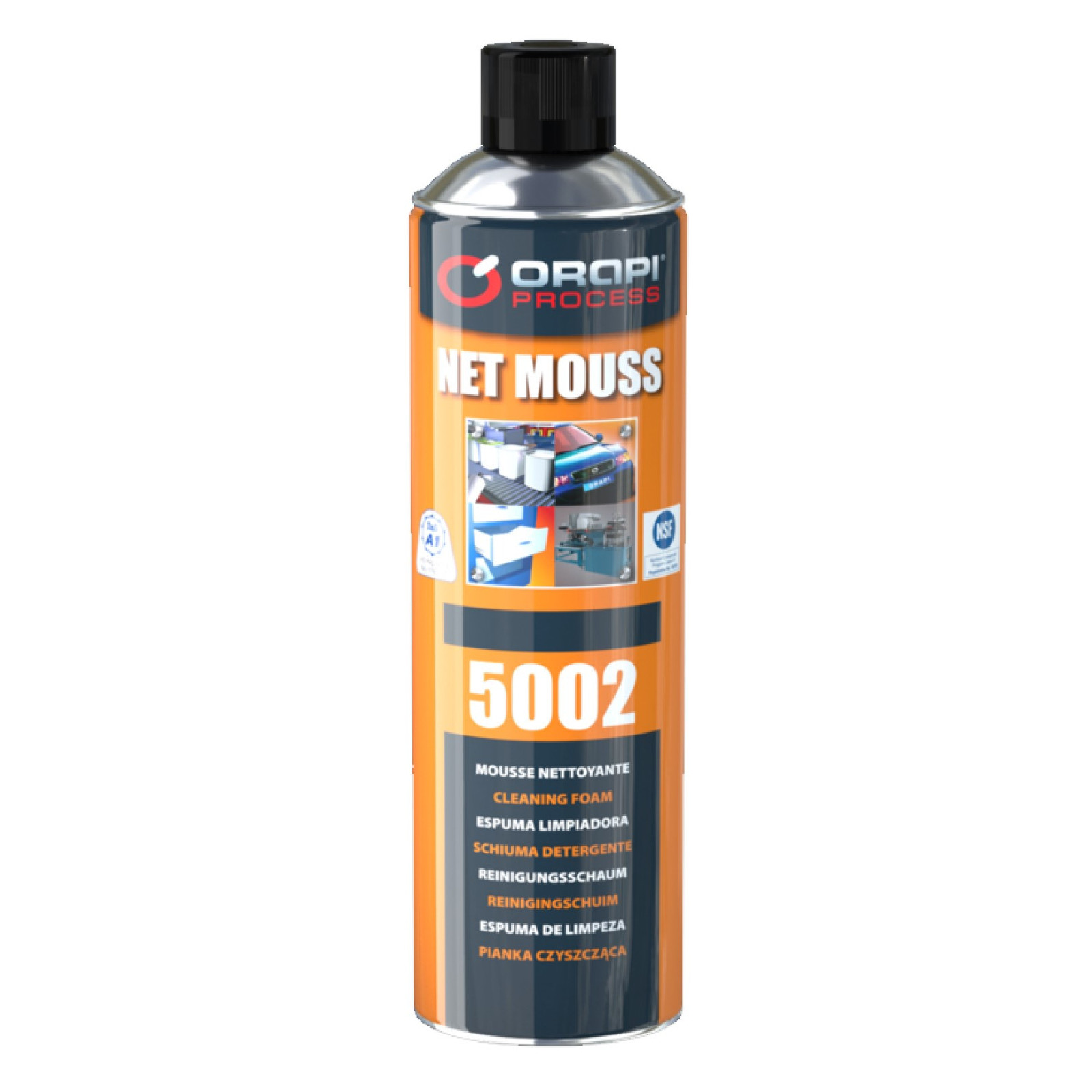 Agrandir l'image NET MOUSS Orapi est un produit nettoyant multi-usage en mousse qui peut être utilisé pour nettoyer et dégraisser une variété de surfaces. Il est formulé avec des agents tensioactifs puissants qui éliminent rapidement les saletés, les graisses, les huiles et les résidus tenaces.