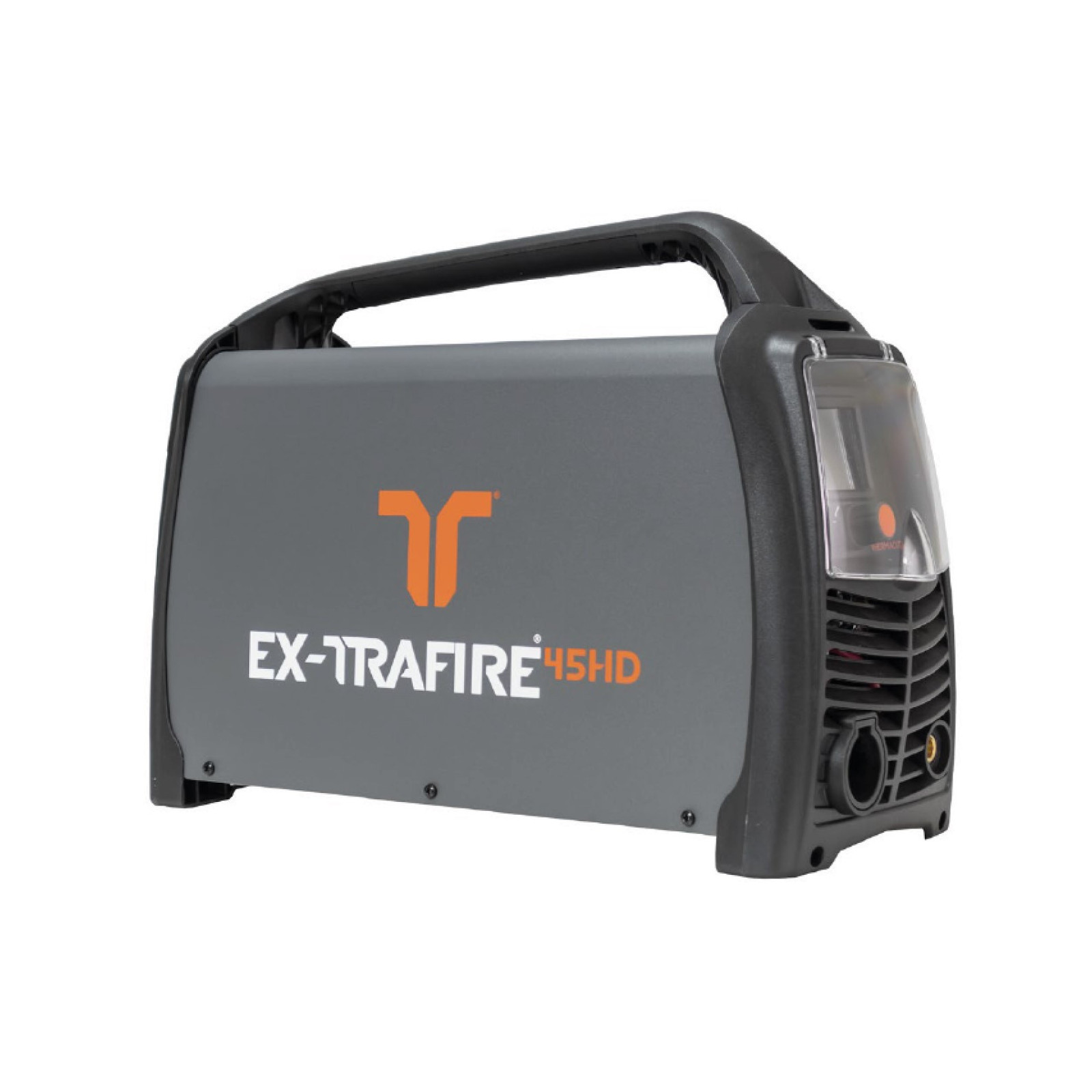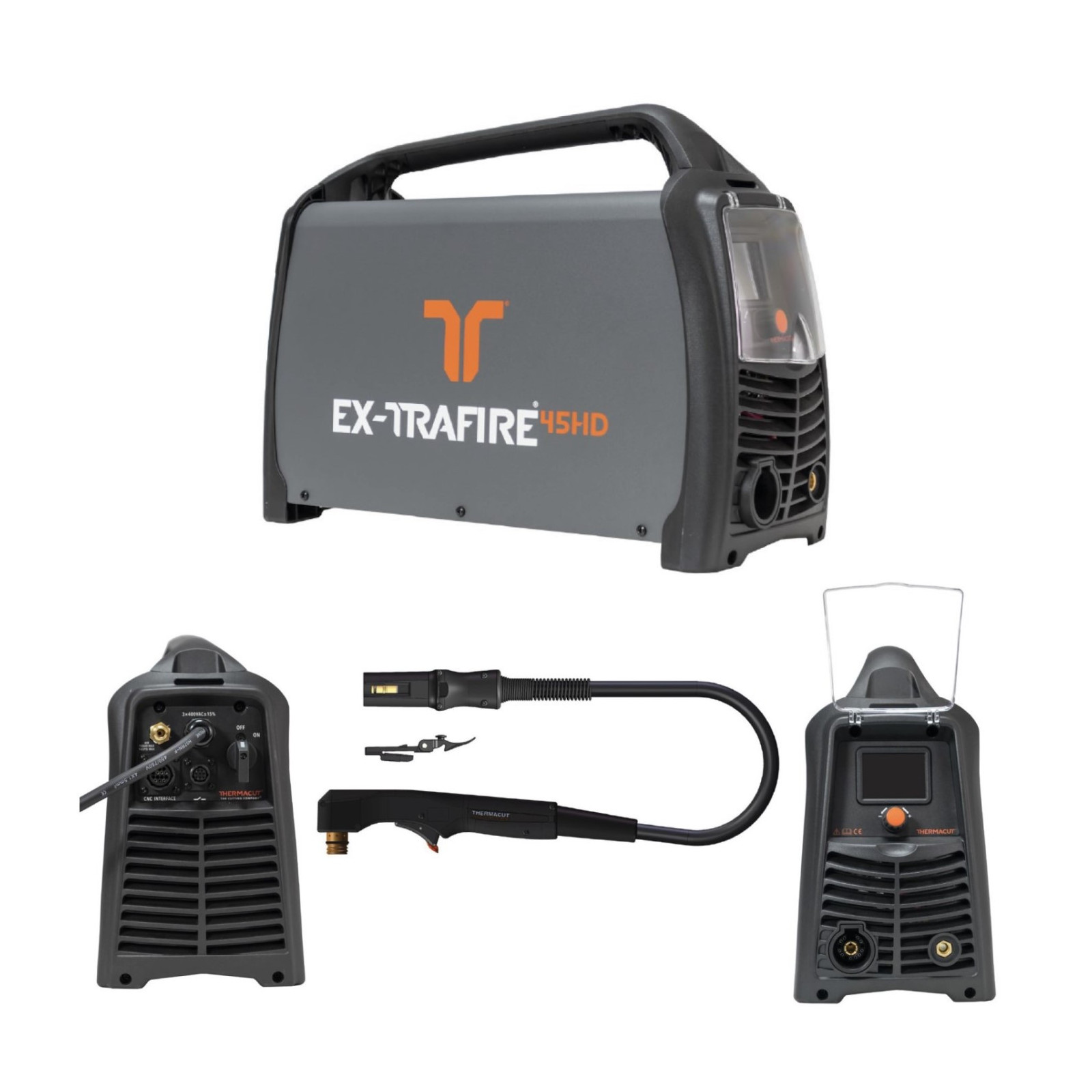 Le découpeur plasma manuel EX-TRAFIRE®45HD by THERMACUT® est un générateur performant et compacte. Il fait partie des plasmas avec la technologie arc-pilot (Coupe au contact) qui assure une longévité plus accrue des consommables de torche contrairement à son cousin qui utilise une technologie HF (Haute fréquence).