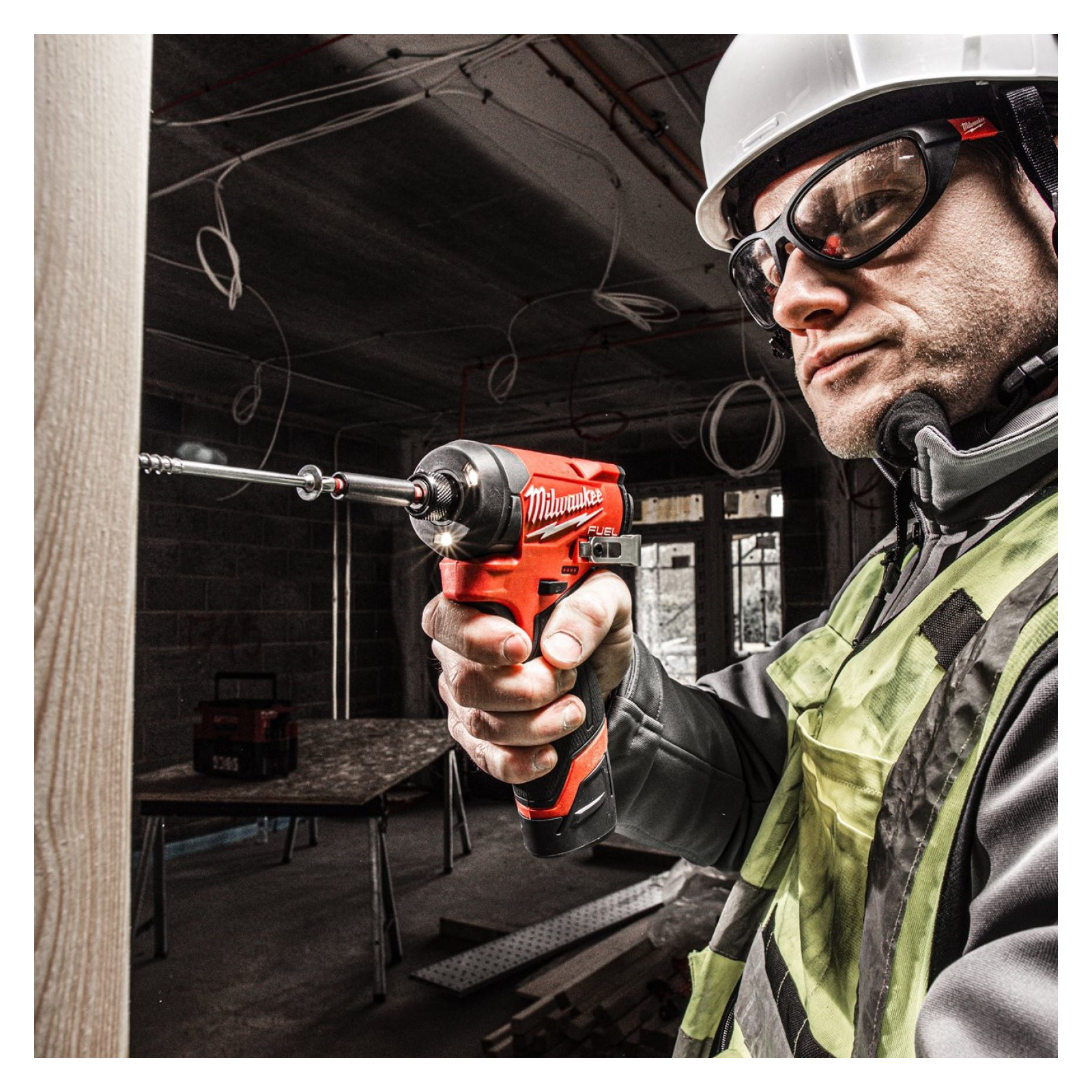 Alimentée par la plateforme de batteries Milwaukee M12, cette visseuse à chocs offre une mobilité totale sur le chantier, permettant de travailler sans être limité par les câbles d'alimentation.