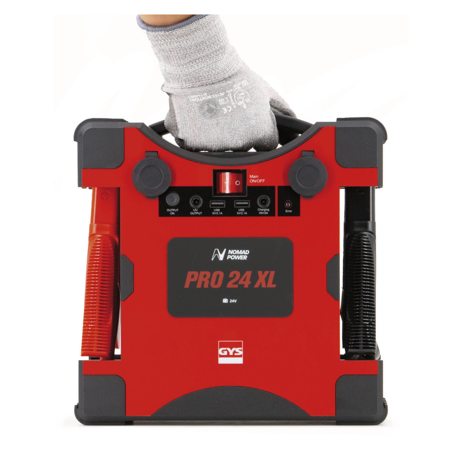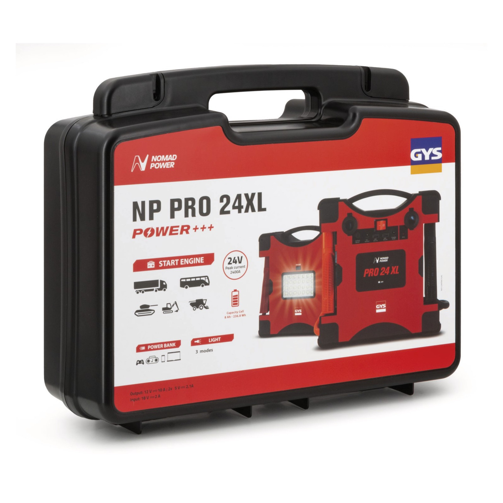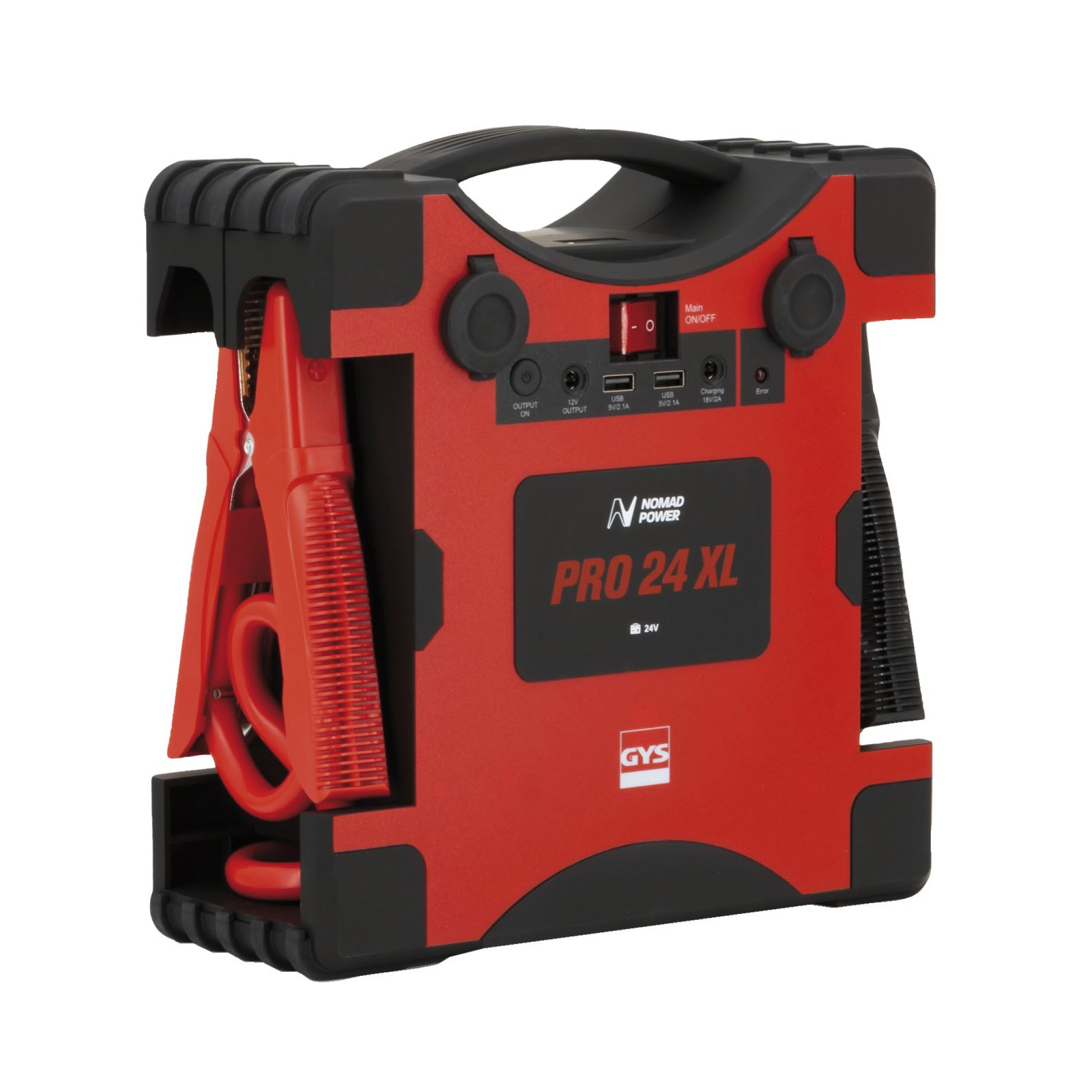 En résumé, le Booster Nomad PRO 24 XL GYS® est un outil indispensable pour les professionnels des véhicules lourds et industriels, offrant une solution fiable et polyvalente pour le démarrage de secours et la recharge d'appareils électroniques.