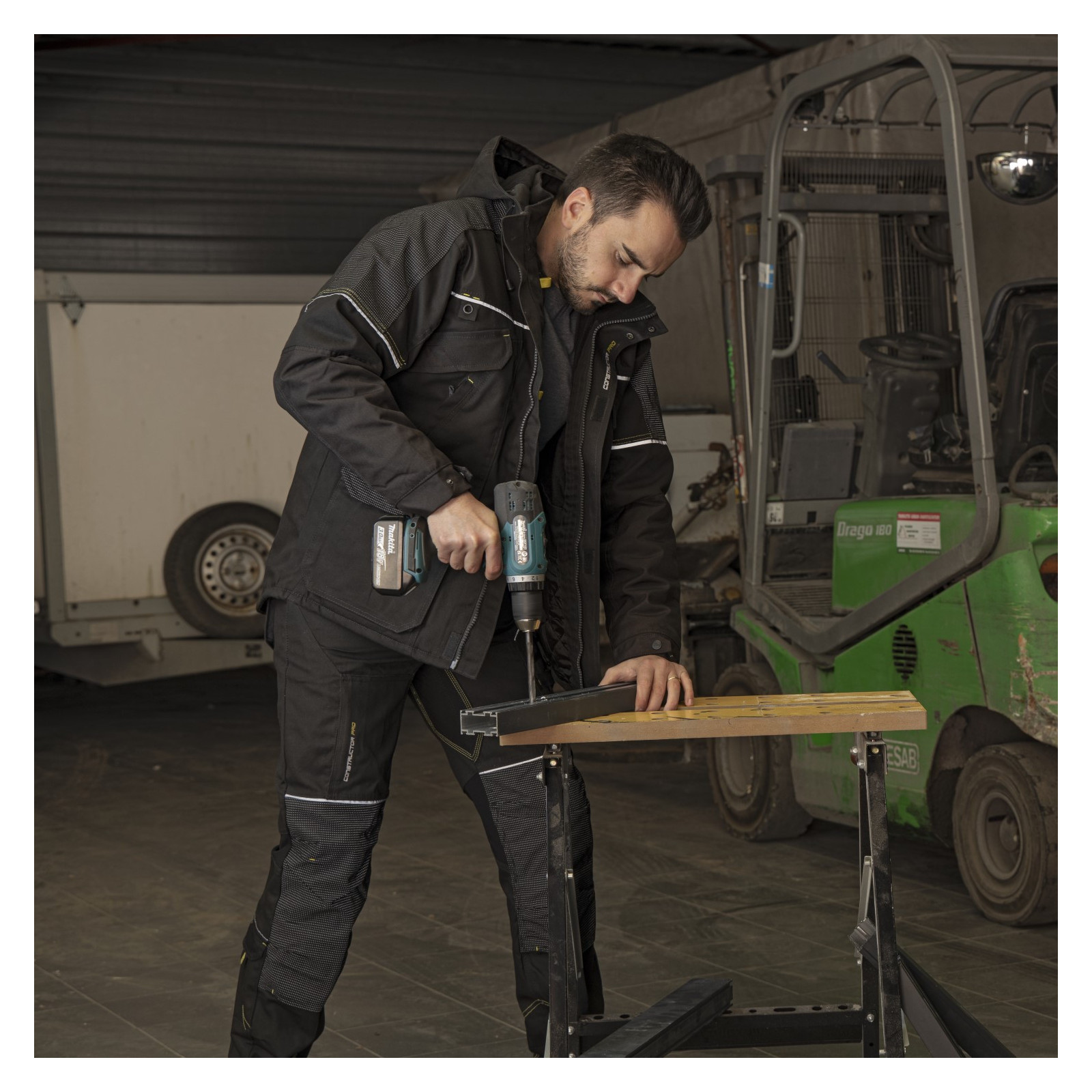 Le côté droit du pantalon dispose d'une poche zippée pour un rangement sécurisé, tandis que le côté gauche propose 1 poche, 1 poche pour mètre et une sangle porte-outils pour plus de commodité. Enfin, à l'arrière, le pantalon est équipé de 2 poches supplémentaires, d'un porte-marteau et d'une poche bas de jambe pour un espace de stockage optimal.