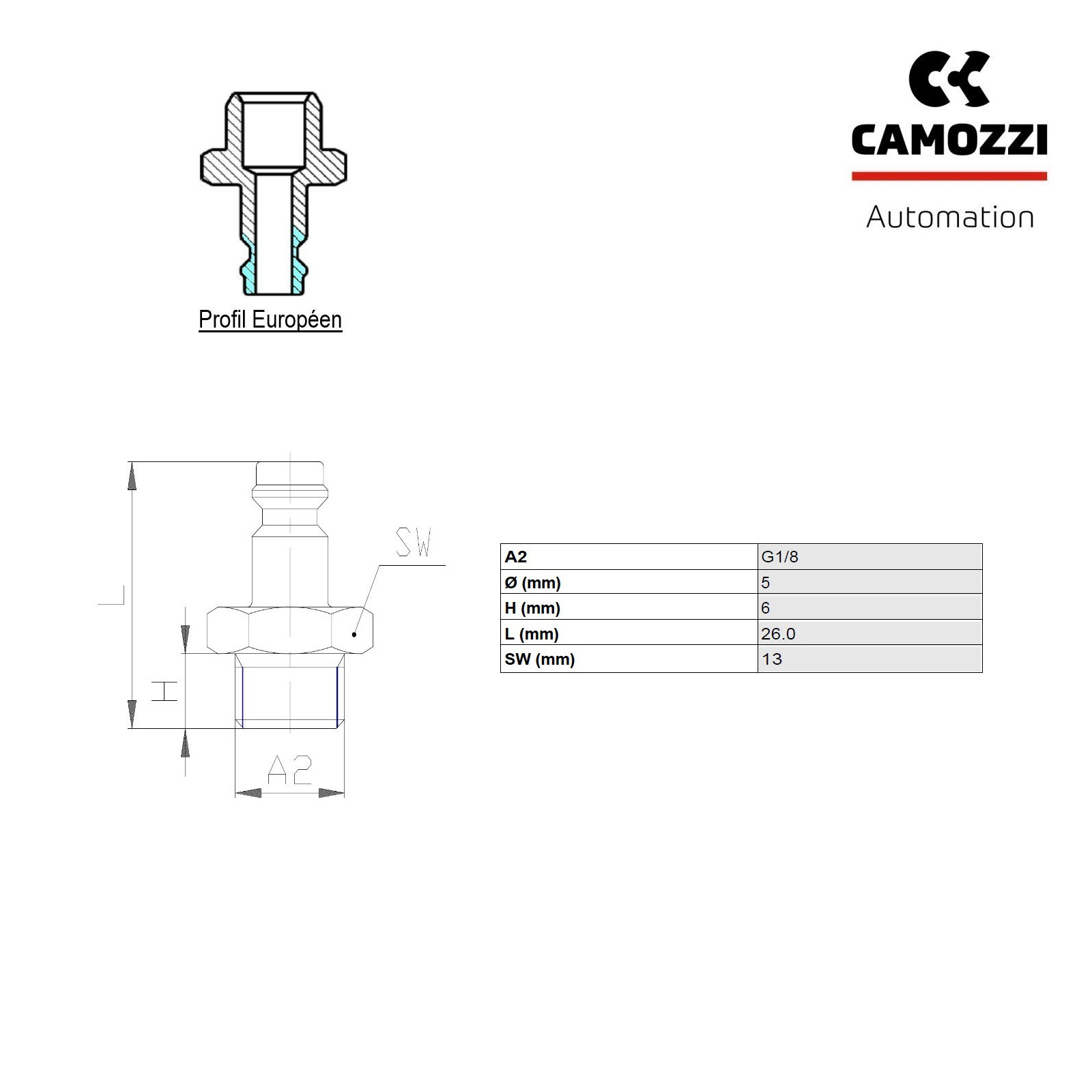 10 Embouts Mini Raccord Rapide Air Comprimé Type Européen - Mâle G1/8" - CAMOZZI 5150 1/8