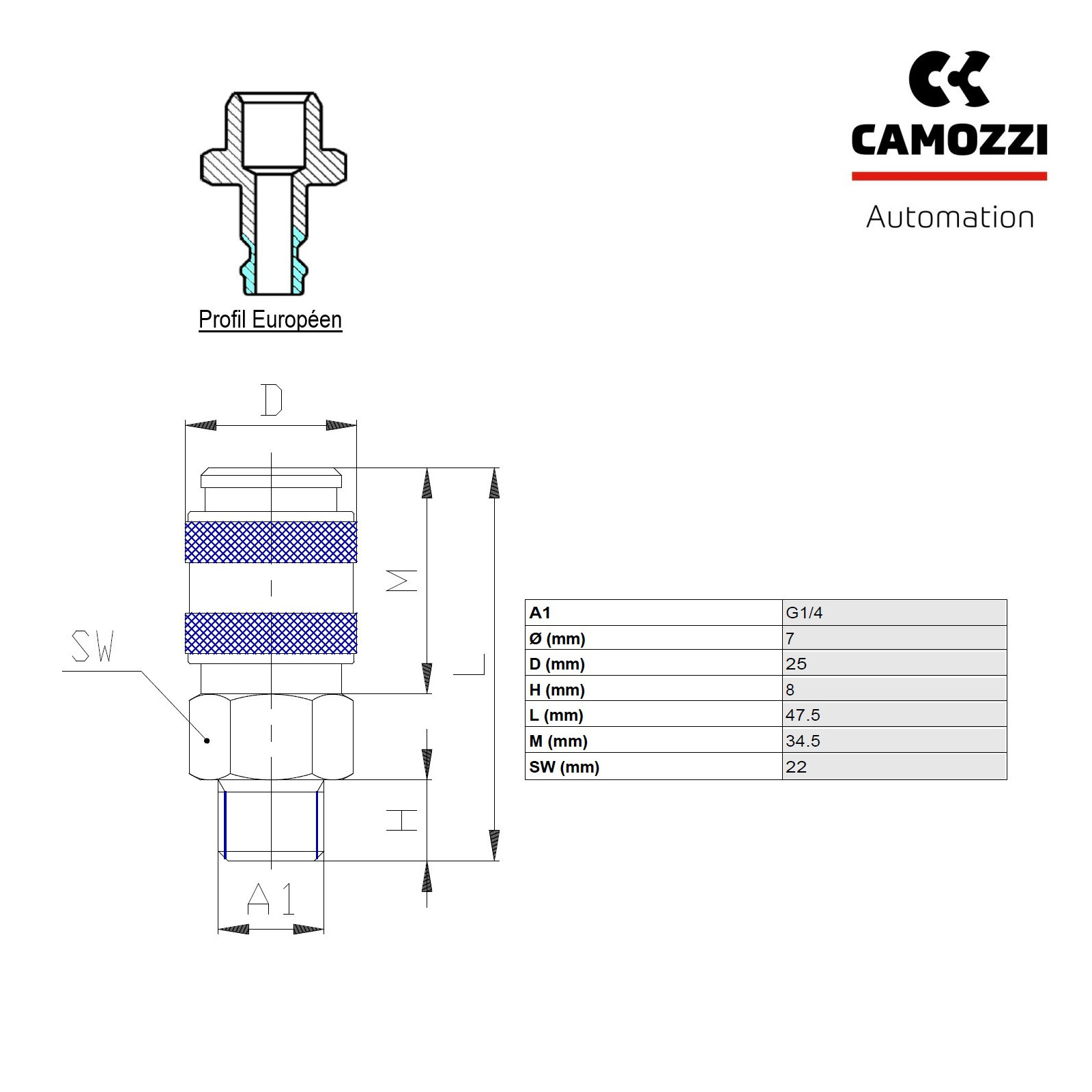10 Mini Raccords Rapides Air Comprimé Type Européen - Mâle G¼" - CAMOZZI 5081 1/4