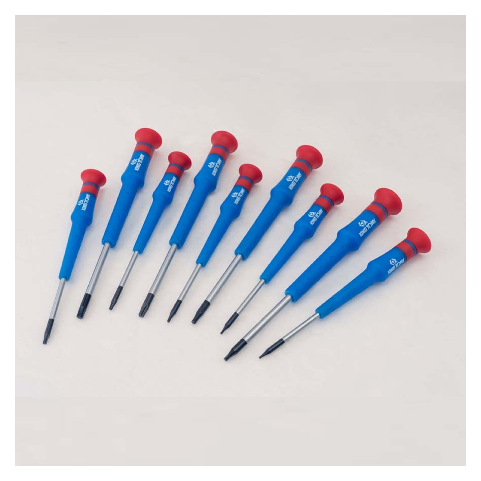 Le jeu de 9 tournevis Torx King Tony 32309PR est le coffret idéal pour tous vos travaux de précision. Composé de 9 tournevis aux tailles variées allant de T4 à T20, ce kit couvre une large gamme de besoins pour travailler sur des vis Torx de différentes dimensions. Les tailles incluses sont : T4 x 40, T5 x 40, T6 x 40, T7 x 40, T8 x 40, T9 x 50, T10 x 50, T15 x 50 et T20 x 50. Chaque tournevis est spécialement conçu pour une utilisation sur des empreintes Torx, garantissant une prise optimale sur la vis.