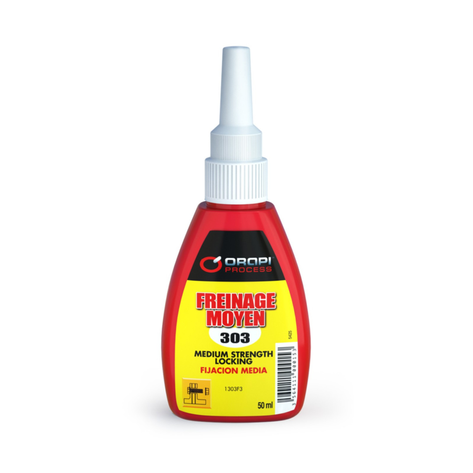 ORAPI 303 est un frein filet à blocage moyen. La rupture de cette résine est d'environ de 15 à 20 Nm. Sa température de fonctionnement oscille de -60° à 150°C.