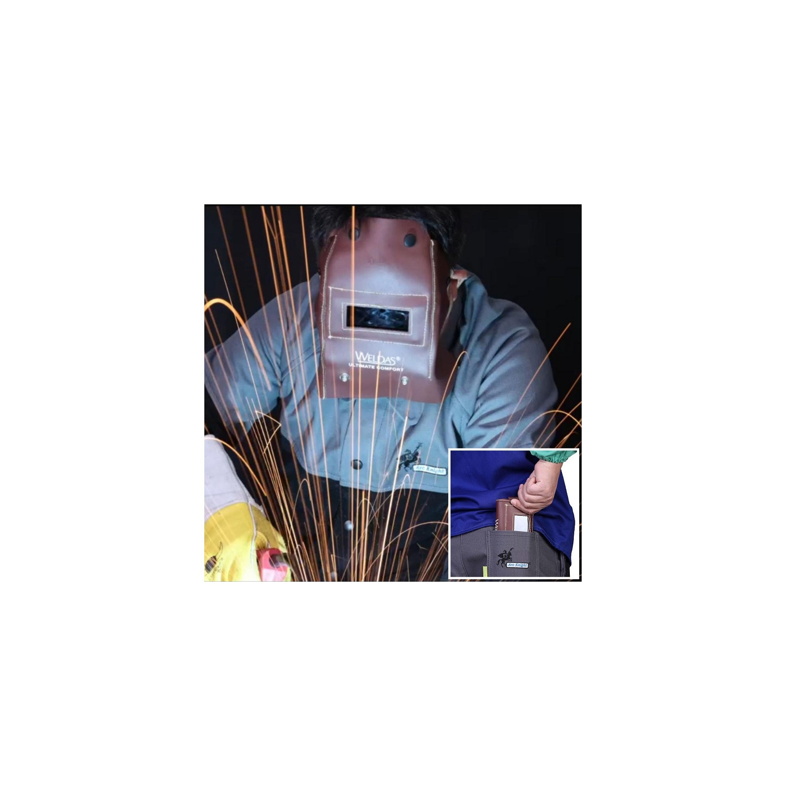 Il est généralement fabriqué en cuir épais et ignifugé, résistant aux hautes températures et aux projections. L'emplacement présent pour recevoir un verre (filtre) protégeant du rayonnement de soudage est d'une dimension de 105X50 mm.