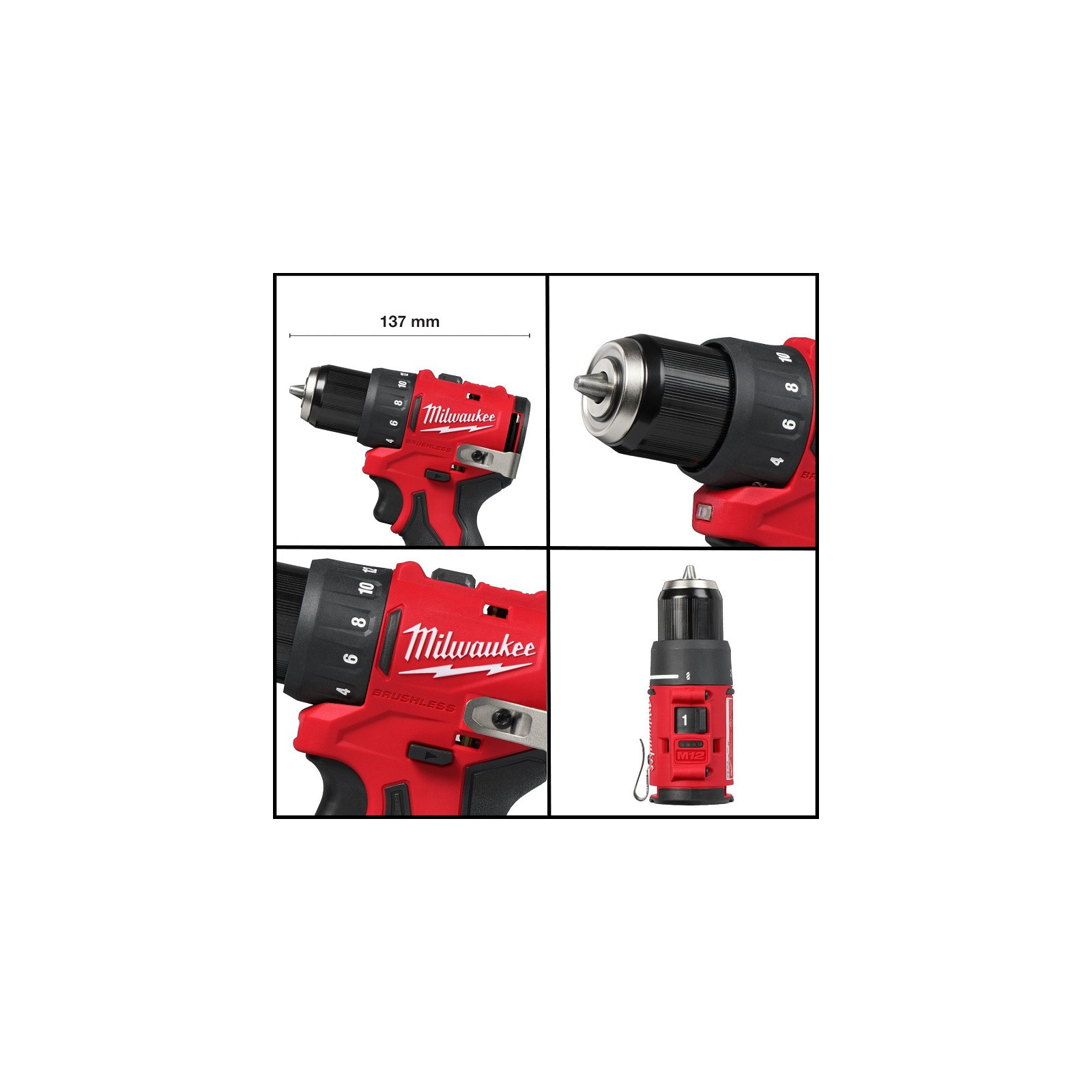 Perceuse-visseuse ultra compacte (137 mm) idéale pour les espaces restreints, offrant un couple de 40 Nm pour un excellent rapport puissance/taille. Équipée d’un mandrin robuste de 10 mm pour un changement d’embout rapide, d’un embrayage mécanique à 13 positions pour un réglage précis du couple, ainsi que d’une LED et d’une jauge d’autonomie pour plus de confort d’utilisation. La technologie moteur Brushless, batterie REDLITHIUM™ et électronique REDLINK™ garantit puissance, autonomie et durabilité accrues. Compatible avec toutes les batteries MILWAUKEE® M12™ grâce au système rétrocompatible.